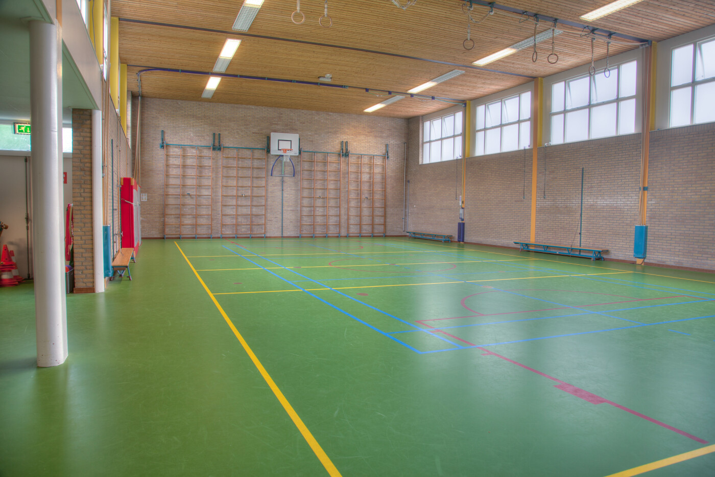 De gymzaal is geschikt voor het beoefenen van diverse sporten en dansgroepen. De faciliteiten voor basketbal en volleybal zijn aanwezig. De zaal kan ook worden gehuurd voor een kinderfeestje. In de gymzaal is geen balmateriaal aanwezig.